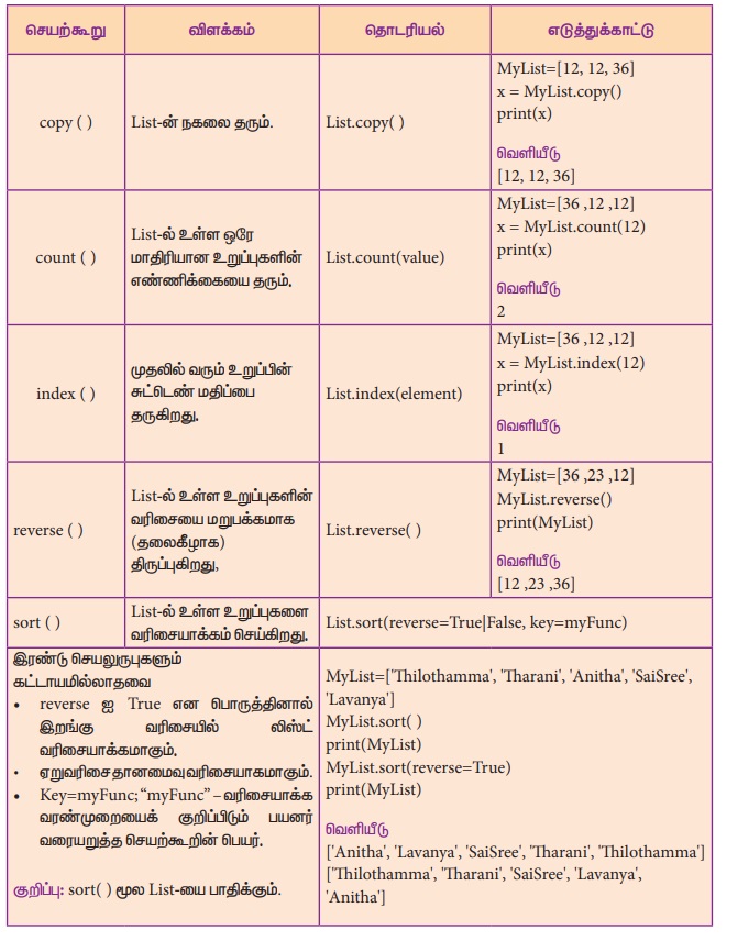 உருவாக்கப்படுகின்றன. List ன் உறுப்புகளை கட்டயமாக சதுர அடைப்புக்குறிக்குள் குறிப்பிட