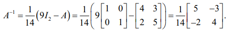 இச்சமன்பாட்டின் இருபுறமும் A−1 −ஆல் பெருக்கக் கிடைப்பது A − 9I2 + 14A−1 = O2.