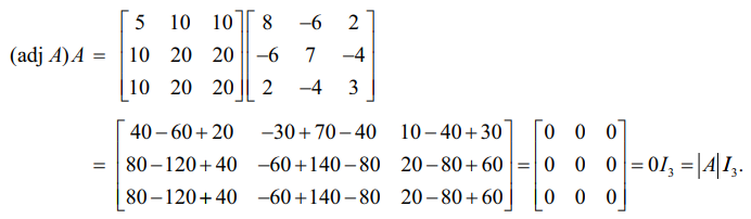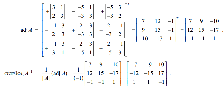 A (adj A) = (adj A) A = |A| I3 என்பது சரிபார்க்கப்பட்டது.