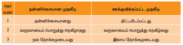 i. தனியார் முதலீடு என்பது மூலதன இருப்பை அதாவது தொழிற்சாலை அல்லது இயந்திரங்களை அதிகரிக்க செய்வது.