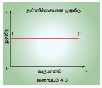 தன்னிச்சை முதலீட்டு வரை கோடு X அச்சுக்கு படிக்கிடை இணைக்கோடாக இருக்கும்.