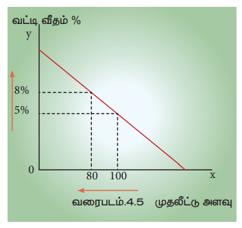5 சதவீதத்திலிருந்து 8 சதவீதமாக வட்டி வீதம் அதிகரித்தால், முதலீட்டின் அளவு ₹100 கோடியிலிருந்து ₹80 கோடியாக குறைவதைக் காணலாம்.