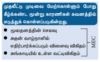 ஆகிய காரணிகள் முதலீட்டளவை நிர்ணயிக்கின்றன.