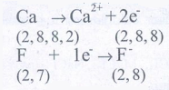ஒரு Ca இழந்த 2e- களை இரு F அணுக்கள் தலா ஒவ்வொன்றை ஏற்று, Ca2+ மற்றும் 2F- அயனிகளுக்கிடையே அயனிப்பிணைப்பு உருவாகிறது.