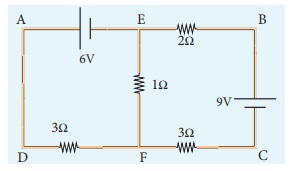 மின்னோட்டம் F லிருந்து E க்கு பாயும்.