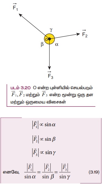 இயக்க விதிகள் - லாமியின் தேற்றம் | 11th Physics : UNIT 3 : Laws of Motion