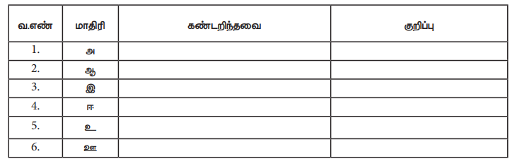 நீவிர் கண்டறிந்தவற்றைப் பதிவு செய்க.