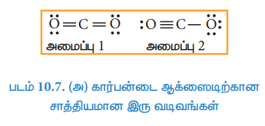 படம் 10.7. (அ) கார்பன்டை ஆக்ஸைடிற்கான சாத்தியமான இரு வடிவங்கள்