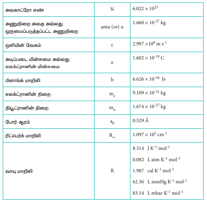 11th Chemistry : List of Fundamental constants in Chemistry Chemistry in Tamil : 11th Standard