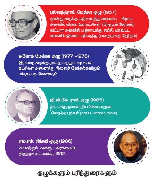 ஆகியன, 1957ஆம் ஆண்டின் பஞ்சாயத்து ராஜ் சட்டத்திற்கு அடிப்படையாகத் திகழ்ந்தன.