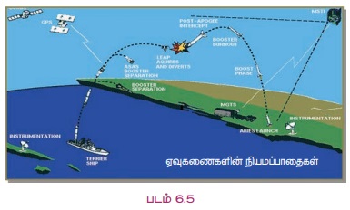 விளக்க எடுத்துக்காட்டு 6.3 ஒரு இலக்கைத் தாக்குவதற்கு இராணுவக்கப்பலில் இருந்து ஒரு ஏவுகணை ஏவப்படுகிறது. எதிர்வரும் ஏவுகணையை இடைமறித்து அழிக்கத் தரையில் இருந்து மற்றொரு ஏவுகணை ஏவப்படுகிறது. ஏவுகணைகளின் நியமப்பாதைகள் படத்தில் காட்டப்பட்டுள்ளன. இது போன்ற நிகழ்வுகள் பல போர்களில் முன் கூட்டியே துல்லியமாக நடைமுறைப்படுத்த நியமப்பாதையின் கருத்தாக்கம் மிக முக்கியப் பங்கு வகிக்கிறது. வளைகுடா போரின் (2 ஆகஸ்ட் 1990 முதல் 28 பிப்ரவரி 1991 முடிய) போது இஸ்ரேலின் நகரங்களை ஈராக் ஸ்கட் (Scud) ரக ஏவுகணைகளை கொண்டு தாக்கியது. அவற்றை இடைமறித்து அழிக்க இஸ்ரேல் பேட்ரியாட் (Patriot) ரக ஏவுகணைகளைப் பயன்படுத்தியது.