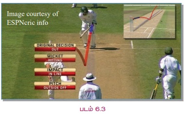விளக்க எடுத்துக்காட்டு 6.1 கிரிக்கெட் விளையாட்டில் பந்து வீசுபவர், ஒரு பந்தை வீசும்போது அப்பந்து செல்லும் பாதை அதன் நியமப்பாதையாகும். பந்து வீசுபவர் மூலம் வீசியபந்தை மட்டையாளர் காலில் தடுத்தாடும் போது, பந்து வீசும் அணியினருக்கும் மட்டையாளருக்கும், இடையே ஏற்படும் பிரச்சனைக்கு (LBW) தீர்வுகாண மூன்றாவது நடுவரின் முடிவுக்கு விடப்படும். அவர் பந்து செல்லும் பாதையைத் திரையில் மெதுவாக இயக்கச் செய்து அப்பந்து மட்டையாளர் காலில் பட்டு பின்னர் ஸ்டம்பில் பட வாய்ப்பு உள்ளதா எனச் சரிபார்த்து பின்னர் சரியான முடிவினை அறிவிப்பார். இங்கு பந்து புள்ளியாகவும் அப்பந்து செல்லும் பாதை நியமப்பாதையாகவும் கருதப்படுகிறது. இம்முறையானது அகில உலகக் கிரிக்கெட் போட்டிகளில் தற்போது அனுமதிக்கப்படுகிறது.