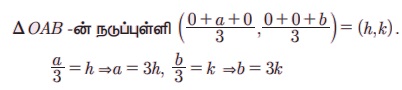 O, A மற்றும் B ஆகிய புள்ளிகளின் ஆயக் கூறுகள் முறையே (0, 0), (a,0) மற்றும் (0, b) என்க.