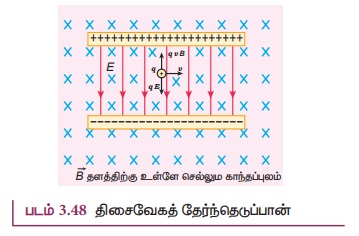 எனக் கருதுக. துகள் காந்தப்புலத்தினுள் நுழைந்த உடன், அத்துகளின் மீது, காந்தப்புலம்