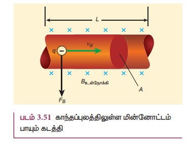 மின்னோட்டம் பாயும் இந்த கடத்தியை காந்தப்புலத்தினுள்