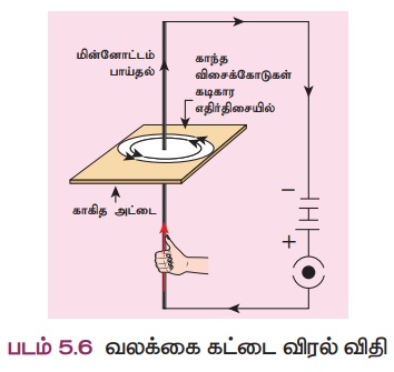 காந்தக் கோடுகள் உங்கள் மற்ற நான்கு விரல்களின் திசையில் இருக்கும் (படம் 5.6).