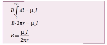 ஆம்பியரின் விதியைப் பயன்படுத்தி மின்னோட்டம் பாயும் முடிவிலா நீளம் கொண்ட கம்பியினால் ஏற்படும் காந்தப்புலம்