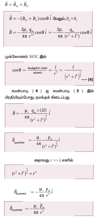 6. சட்ட காந்தமொன்றின் நடுவரைக்கோட்டில் ஏதேனும் ஒரு புள்ளியில் ஏற்படும் காந்தப்புலத்துக்கான கோவையைப் பெறுக.