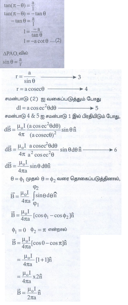 • முடிவிலா நீளம் கொண்ட I மின்னோட்டம் பாயும் நேரான கடத்தி ஒன்றைக் கருதுக.