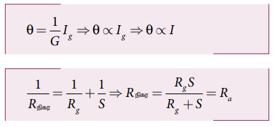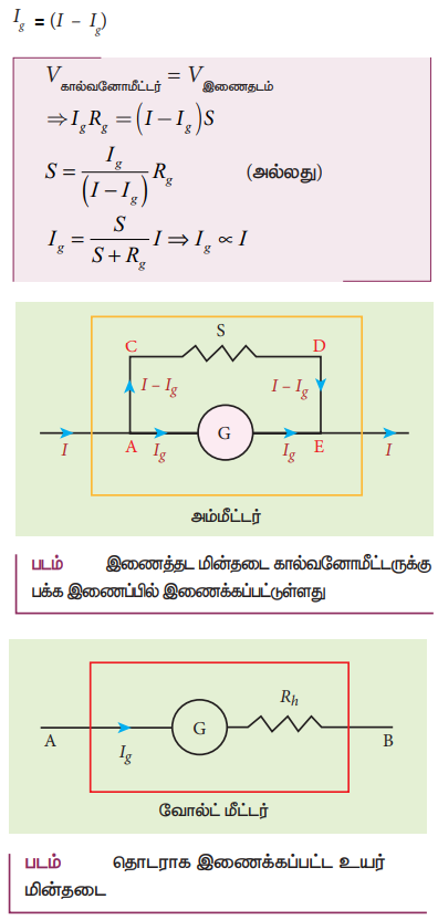 • ஒரு கால்வனோ மீட்டரை அம்மீட்டராக மாற்ற, குறைந்த மின்தடை ஒன்றை பக்க இணைப்பில் இணைக்க வேண்டும்.