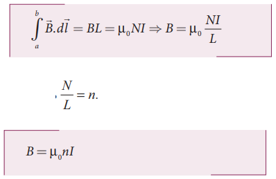 12. ஆம்பியரின் சுற்று விதியின் உதவியுடன் நீண்ட வரிச்சுருளின் உட்புறம் மற்றும் வெளிப்புறத்தில் ஏற்படும் காந்தப்புலத்தைக் கணக்கிடுக.