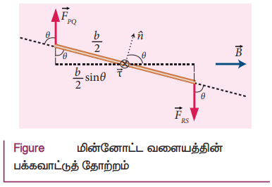 (அ) θ = 90° அல்லது வளையத்தின் தளம் காந்தப்புலத்திற்கு இணையாக உள்ள போது, மின்னோட்ட வளையத்தின் மீதான திருப்புவிசை பெருமம் ஆகும்.