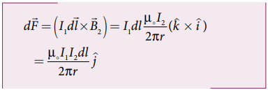 • A கடத்தியினால், B கடத்தியின் ஓரலகு நீளத்தில் செயல்படும் விசை