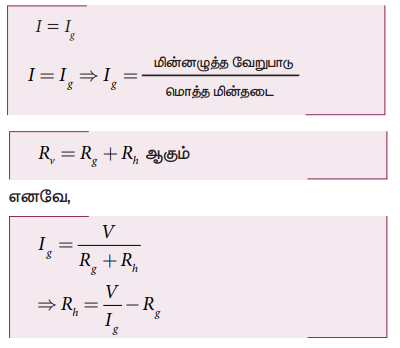 • Rg−கால்வனோ மிட்டர் வழியே பாயும் மின்தடை