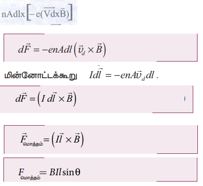 • கடத்தி A யில் உள்ள dl நீள சிறு கூறின் மீது செயல்படும் காந்தவிசை