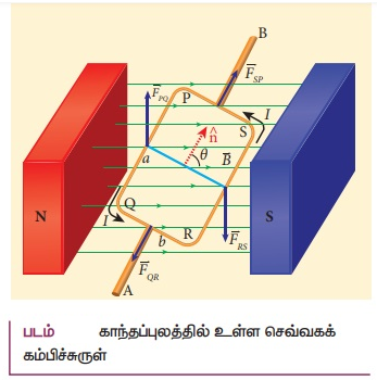• PQ மற்றும் RS பக்கங்கள் எப்பொழுதும் காந்தப் புலத்திற்கு B செங்குத்தாக இருப்பதால் விசையை உணரும்.