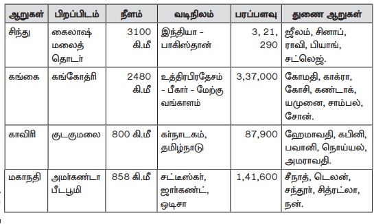 5. இந்தியாவில் உள்ள முக்கிய ஆறுகளின் பிறப்பிடம்,