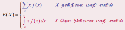 ஒரு சமவாய்ப்பு மாறி X -இன் நிகழ்தகவு பரவல் சார்பு f (x) என்க. E(X) அல்லது μ எனக் குறிப்பிடப்படும்