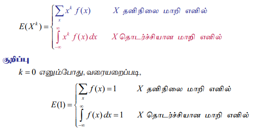 g(x) = xk, எனில் மேற்கண்ட தேற்றம் தரும் எதிர்பார்க்கப்படும் மதிப்பு சமவாய்ப்பு மாறி X-ன் ஆதிபுள்ளியில் உள்ள k -வது விலக்கப் பெருக்கத் தொகை எனப்படுகிறது.