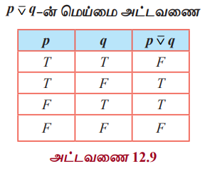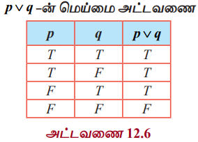 தனிநிலைக் கணிதம் | கணிதவியல் - கணித தர்க்கவியல் (Mathematical Logic) : தர்க்க இணைப்புகள் மற்றும் அதன் மெய்மை அட்டவணைகள் (Logical Connectives and their Truth Tables) | 12th Maths : UNIT 12 : Discrete Mathematics