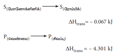 S(மோனோக்ளினிக்) → S(ரோம்பிக்) ΔHtrans = - 0.067 kJ