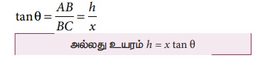 AB = h என்பது அளக்க வேண்டிய மரத்தின் உயரம் அல்லது கோபுரத்தின் உயரம் என்க. B யிலிருந்து x தொலைவில் உள்ள C என்ற இடத்தில் உற்றுநோக்குபவர் இருப்பதாகக் கொள்வோம்.