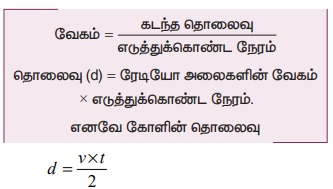 தொலைவு (d) = ரேடியோ அலைகளின் வேகம் × எடுத்துக்கொண்ட நேரம்.