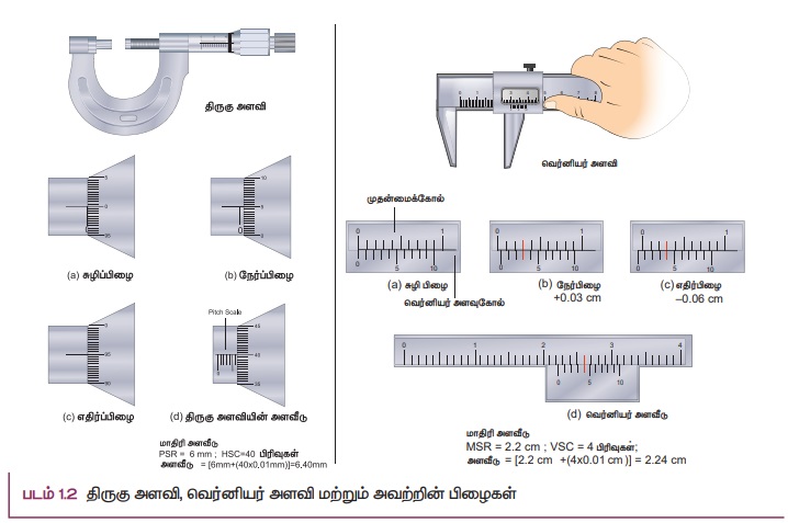 (i) சிறிய தொலைவுகளை அளவிடுதல் (திருகு அளவி மற்றும் வெர்னியர் அளவி)