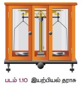 இயற்பியல் தராசு ஆய்வகங்களில் பயன்படுத்தப்படுகிறது. இது சாதாரணத் தராசினைப் போன்றதாகும். ஆனால் இத்தராசு அதிகத் துல்லியத்தன்மையைப் பெற்றுள்ளது. இயற்பியல் தராசினைப் பயன்படுத்தி மில்லி கிராம் அளவில் துல்லியமாக அளவிட முடியும் (படம் 1.10).