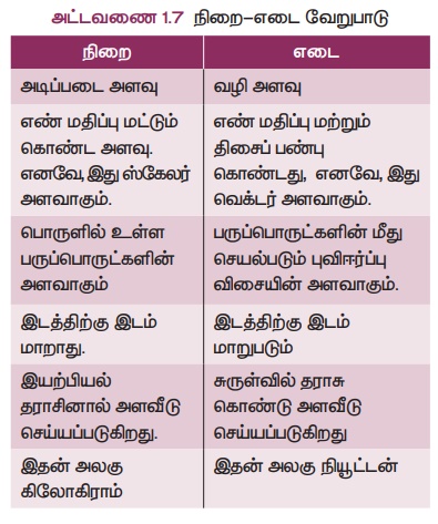 அட்டவணை 1.7 நிறை-எடை வேறுபாடு