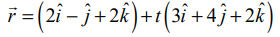 கொடுக்கப்பட்ட நேர்க்கோட்டின் கார்மசியன் சமன்பாடு (x−2)/3 = (y+1)/4 = (z−2)/2 = t (என்க)