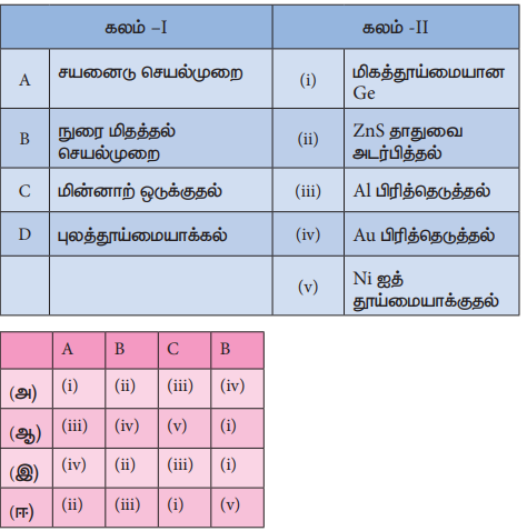வேதியியல் - உலோகவியல் : சரியான விடையைத் தேர்வு செய்க | 12th Chemistry : UNIT 1 : Metallurgy