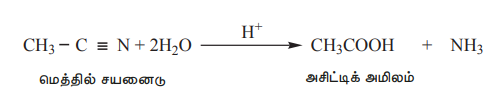 b) அமில நீரிலிகளை நீராற்பகுக்கும்போது அவை கார்பாக்சிலிக் அமிலங்களை தருகின்றன.