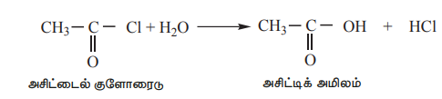 a) அமில குளோரைடுகளை நீராற்பகுக்கும்போது அவை கார்பாக்சிலிக் அமிலங்களை தருகின்றன.