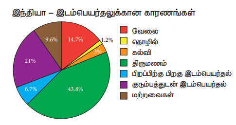 ● இந்தியா மற்றும் தமிழ் நாட்டில், பெண்களின் இடப்பெயர்வினைத் தீர்மானிக்கும் முக்கிய காரணியாக திருமணம் உள்ளது.