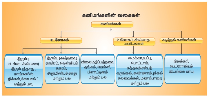 கனிமங்கள் பல வகையாக இருந்தாலும் அவற்றின் பண்புகள் மற்றும் வணிகப் பயன்பாட்டின் படி
