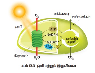 (ATP, NADPH + H+ ) உருவாக்கம்.