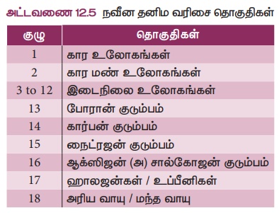 அட்டவணை 12.6 துணைக் கூடுகளின் எலக்ட்ரான்களின் எண்ணிக்கை