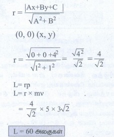 2. 5 அலகுகள் நிறை கொண்ட ஒரு துகள் v = 3 √2 அலகுகள் சீரான வேகத்துடன் XOY தளத்தில் y = x + 4 என்ற சமன்பாட்டின் படி இயங்குகிறது. அத்துகளின் கோண உந்தத்தை காண்க.