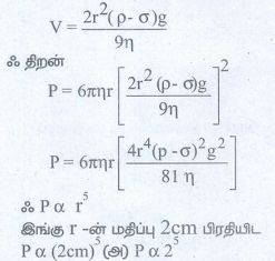 ஸ்டோக்ஸ் விதியில், பாகியல் விசை F = 6𝜋ηrv ...(1)